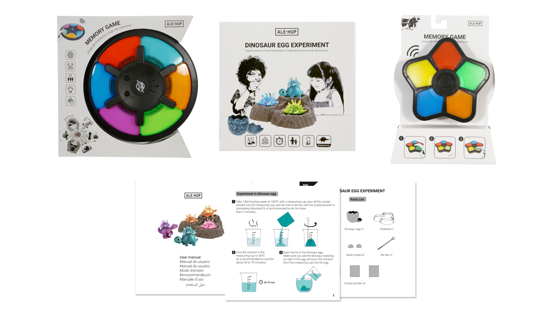 Diseño de packaging para productos de Ale-hop. También diseño y maquetación de instrucciones en más de siete idiomas.